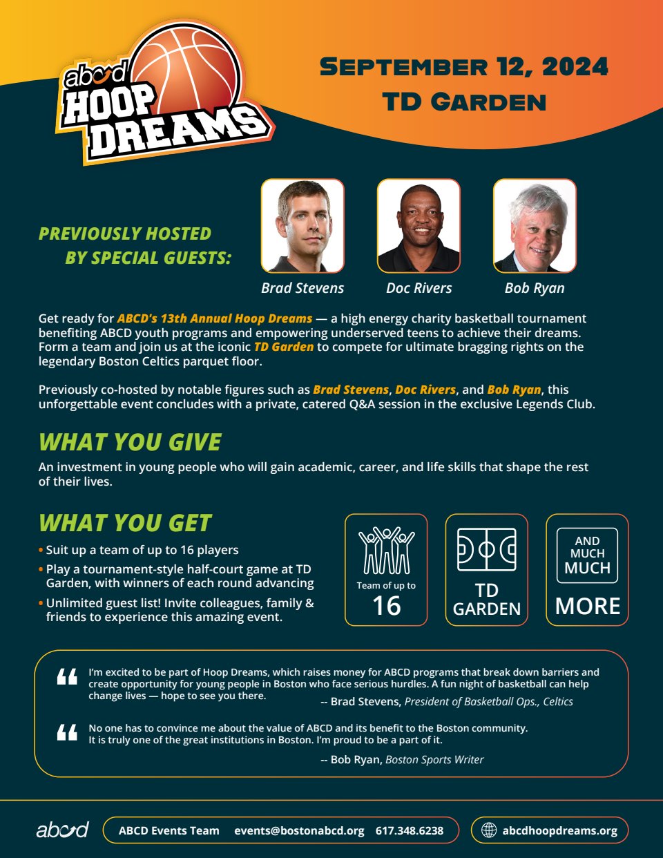 Hoop Dreams is an annual charity event held by Action for Boston Community Development (ABCD) that takes place at Boston’s TD Garden with the proceeds benefiting the company’s youth programs.